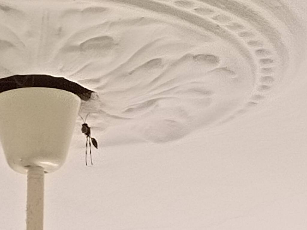 Today I noticed a wasp coming and going in my living room. More precisely, it goes into the wall just next to the light. There is not too much room there and I don’t really have visibility, so I can’t tell what this wasp-like insect is doing there. Also, even tho I think it’s one, maybe it’s one at a time? Not sure.