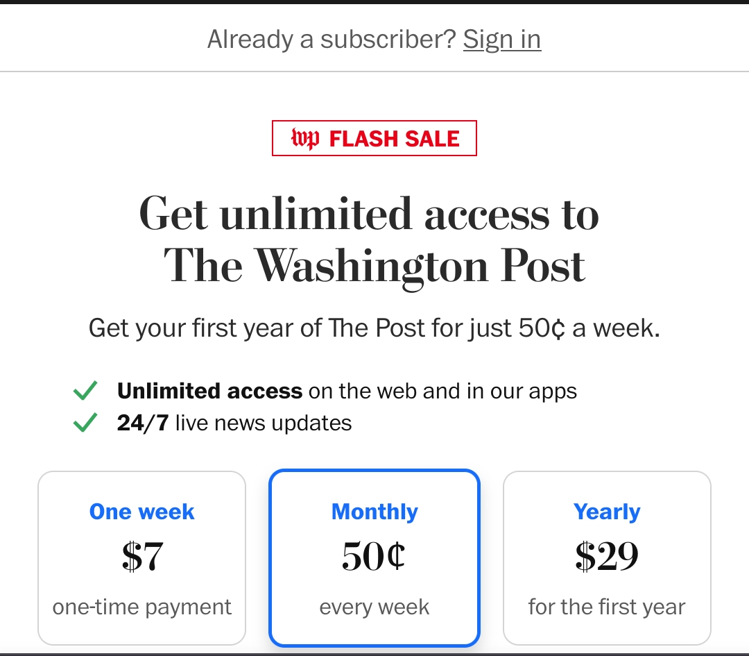 It is because of your post I realized it’s cent not dollars. I thought who pays 50 dollars per week for an online newspaper.