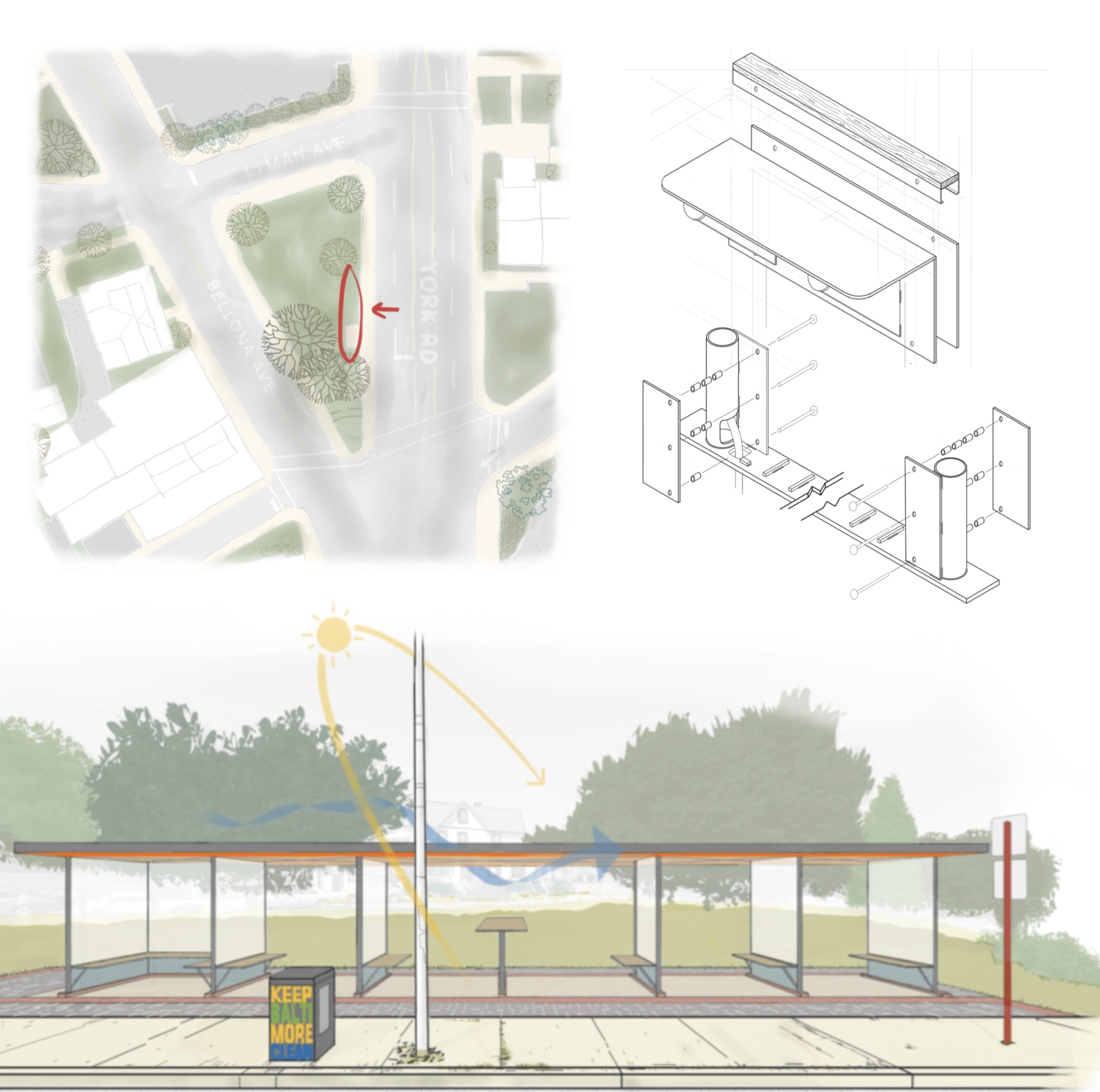 I am a multidisciplinary designer with a concentration in architecture and environmental design. Lately I’ve been researching and exploring novel approaches to organized efforts, infrastructure development, and strategic implementation. The above image is mostly an unrelated snapshot example of my past work and design approach. It utilizes 80% up-cycled transportation repair materials such as scrap road-plate steel, treated lumber, common masonry, common schedule steel pipes, and polyethylene tubing to create an expanded public transit stop which uses solar heat gain to de-ice the surrounding ground during colder months.
