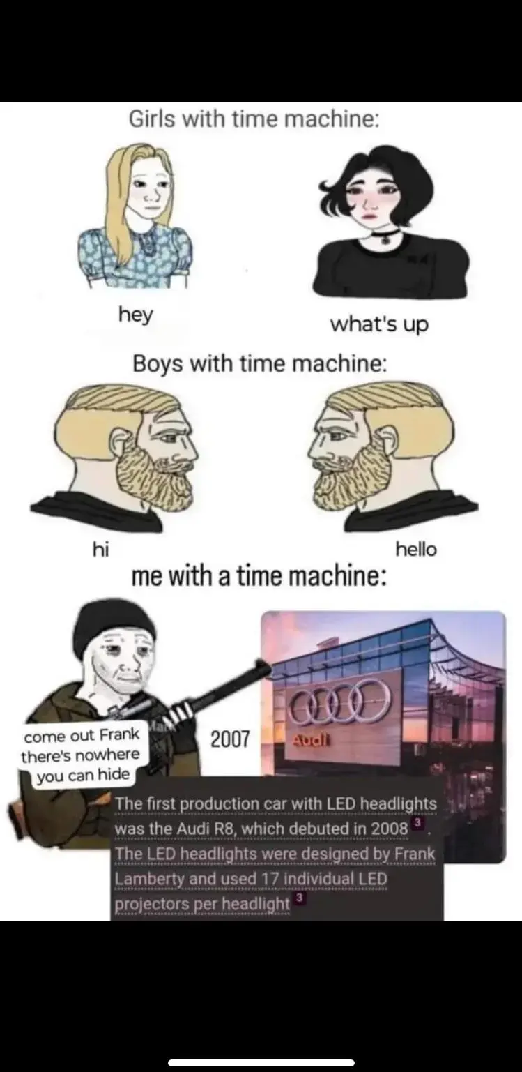 Hansae@lemmy.dbzer0.com to Memes@lemmy.mlEnglish · 8 months agoI hate these new lights on cars so so much, instant flash bangs.lemmy.dbzer0.comimagemessage-square3fedilinkarrow-up10