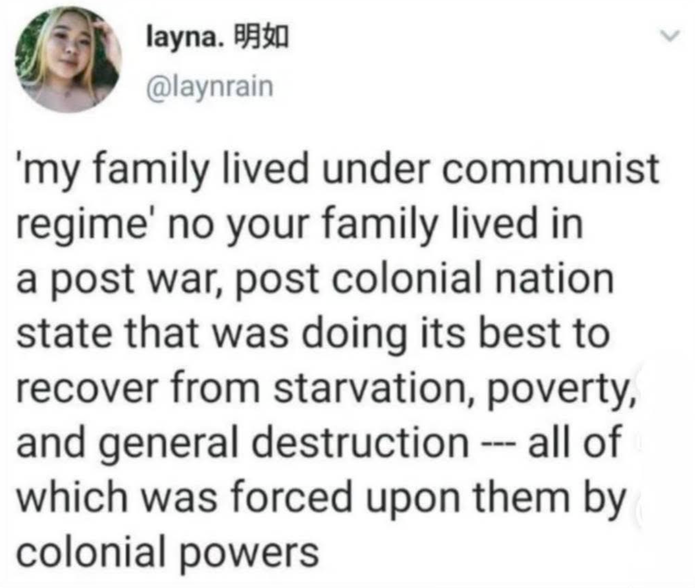 No, this is wildly incorrect. The Soviet Union had no colonies, nor did it run its economy based on extraction and foreign plundering. It was an economy where public ownership was the principle aspect of the economy, and production was focused primarily on meeting people’s needs, which is why life expectancy doubled, literacy rates tripled, homelessness was at or near 0 (outside of critical periods like World War II), education and healthcare were free and high quality, etc.