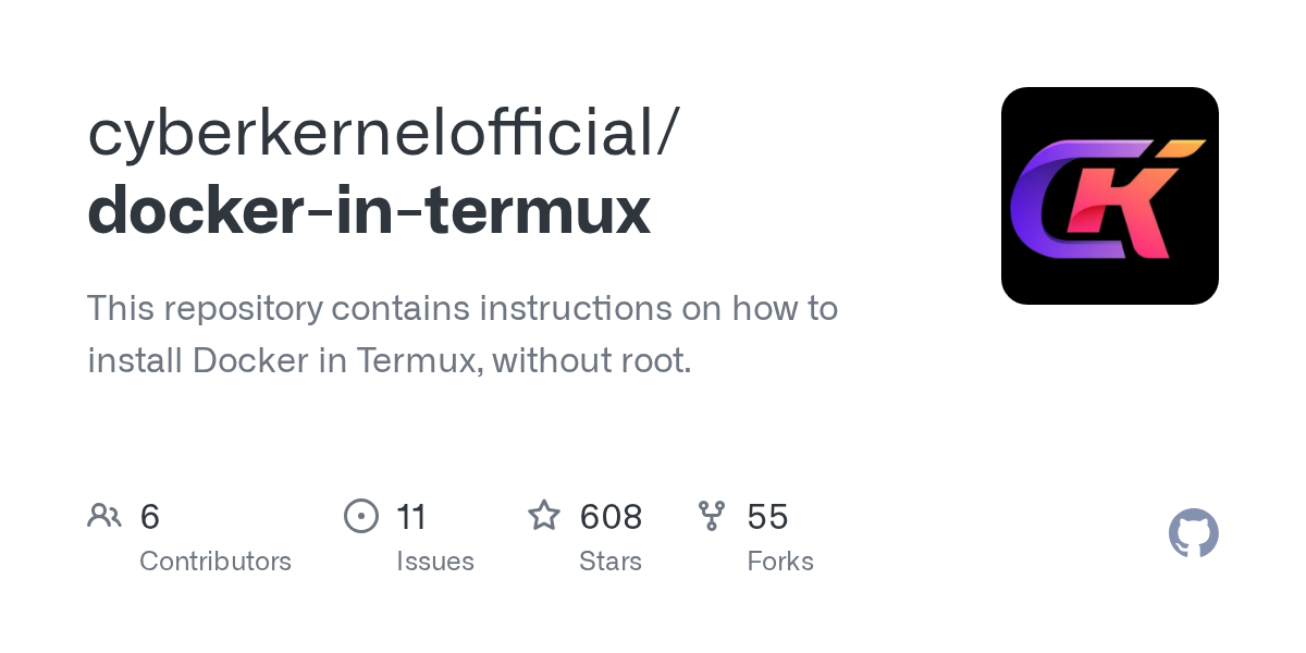 WhiteOakBayou@lemmy.world to Selfhosted@lemmy.worldEnglish · 2 months agoGitHub - cyberkernelofficial/docker-in-termux: This repository contains instructions on how to install Docker in Termux, without root.github.comexternal-linkmessage-square9fedilinkarrow-up188file-text