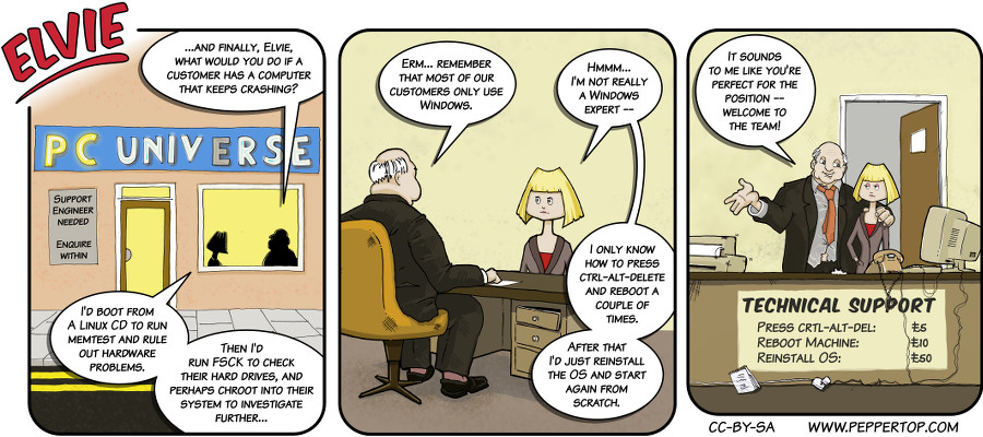I haven’t really understood Windows since XP died. I understand it even less since I started using Linux. All I know how to do is power cycle the machine a couple times. Which tends to fix a lot of things, not just Windows and not just PCs. If a reboot doesn’t help, all I’ll tell you is to ask someone more knowledgeable about Windows than I am, or reinstall the whole damn thing.