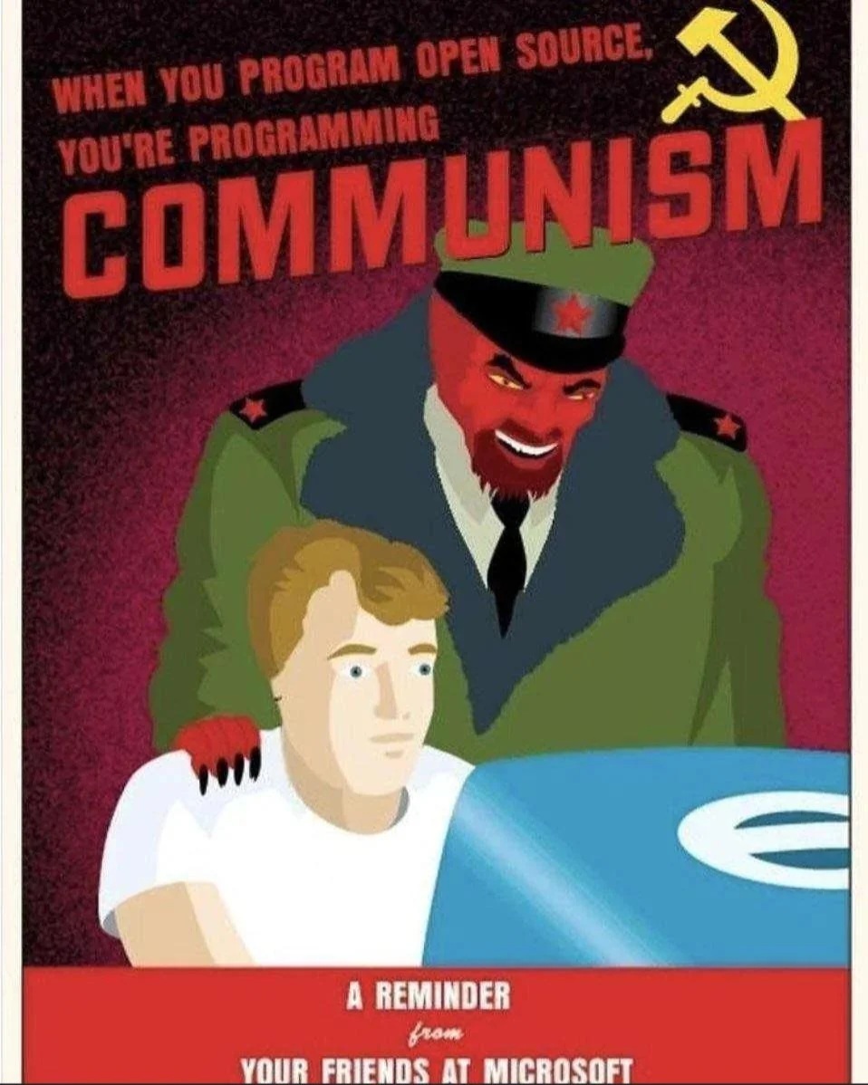 alexei_1917 [mirror/your pronouns]@hexbear.net to GNU+Linux Humor@lemmy.mlEnglish · 6 months ago"And when you program proprietary, you're pair programming with the devil - a reminder from your friends at the FSF."lemmy.mlimagemessage-square0fedilinkarrow-up11file-text