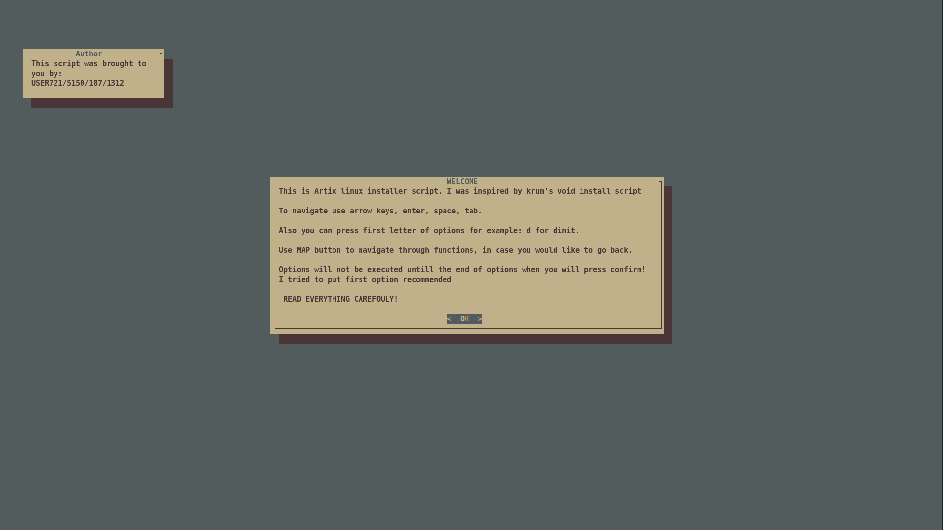 Hello, I wanted to share my Artix Install Script, its not best but i think its pretty nice.