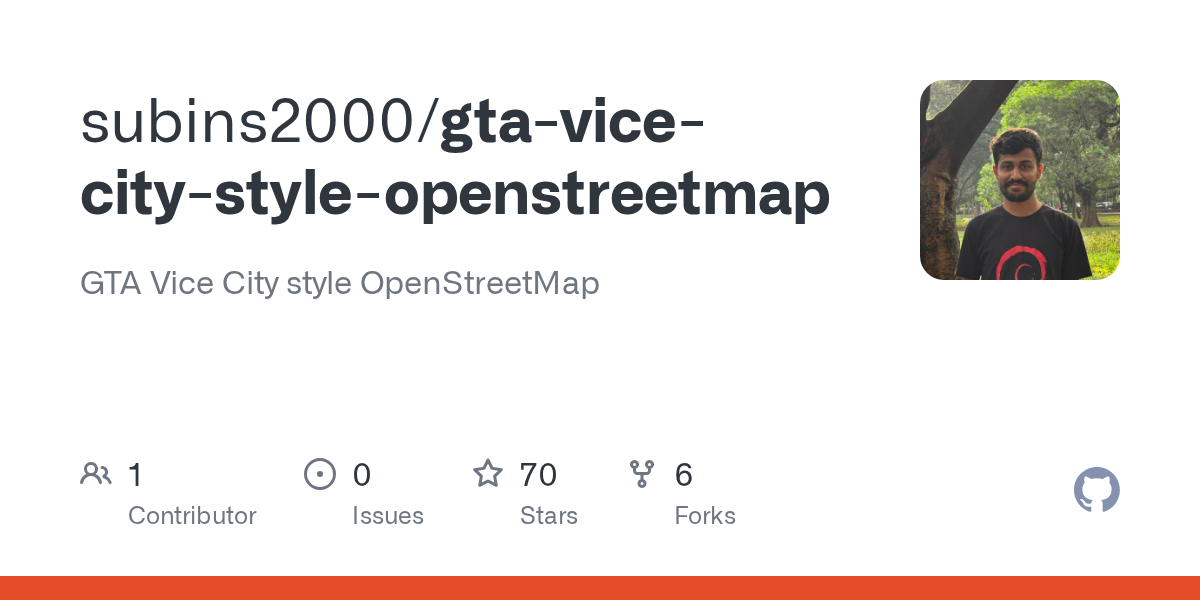 Otter Raft@lemmy.ca to OpenStreetMap community@lemmy.mlEnglish · 2 months agoGTA Vice City style OpenStreetMapgithub.comexternal-linkmessage-square0fedilinkarrow-up11file-textcross-posted to: osm@feddit.uk