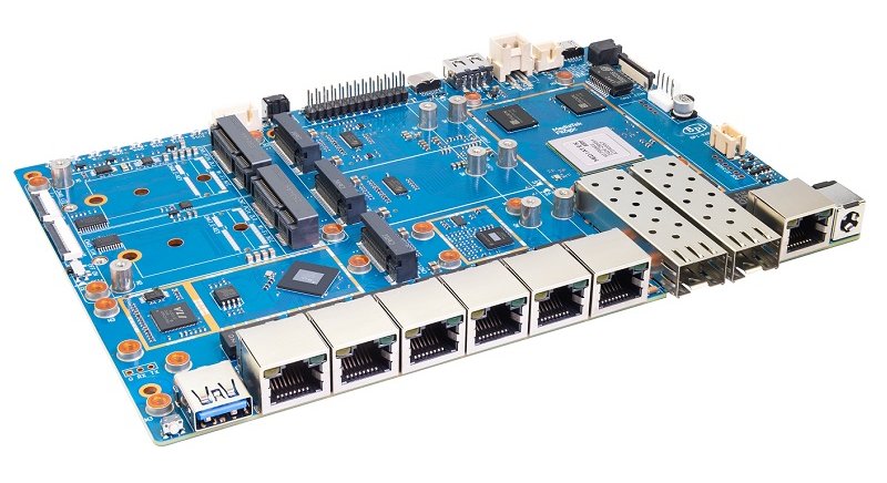 There’s an interesting discussion in the comments about the architecture: https://www.cnx-software.com/2025/10/20/banana-pi-bpi-r4-pro-board-offers-2x-10gbe-sfp-cages-6x-10gbe-2-5gbe-gbe-ports-wifi-7-support/