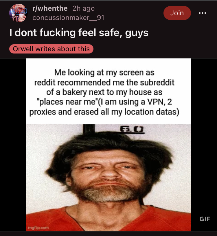 Today around 12:00pm EDT, a post was uploaded to r/whenthe by u/concussionmaker_91 about how despite their multiple privacy measures, Reddit was still able to ping their location and show them an ad about a business in close proximity to their house. Then, in less than 2 hours after the post when live, their year old account was permanently banned. Redditors in the comment section used a website called SnooSnoop to see if this account has done anything malicious in the past that may be grounds for a ban only to find nothing.