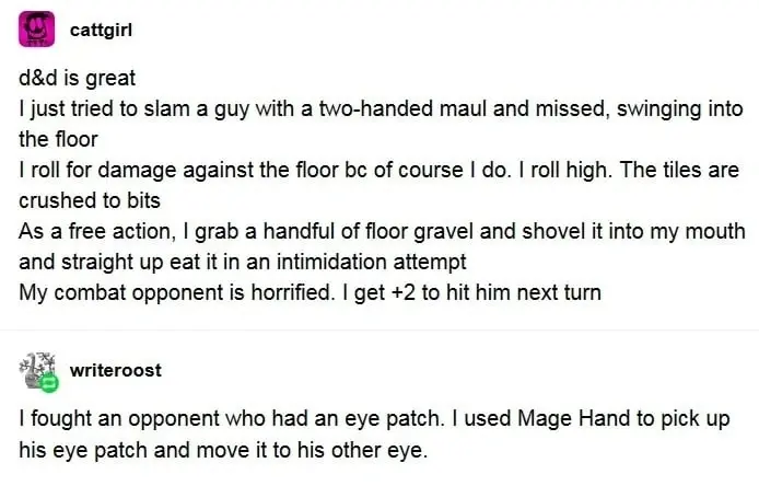 Stamets@lemmy.dbzer0.com to RPGMemes @ttrpg.network · 10 days agoPossibilities are endlesslemmy.dbzer0.comimagemessage-square81fedilinkarrow-up1825