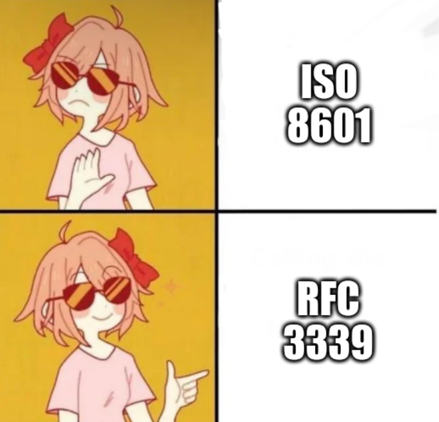 ISO 8601 is paywalled RFC allows a space instead of a T (e.g. 2020-12-09 16:09:…) which is nicer to read.