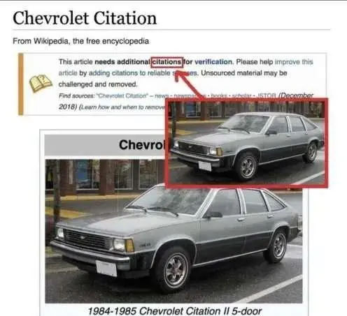 Just ask a parking enforcement officer to write a ticket and tuck it under the windshield wipers. A citation for the Citation. Then take a picture and add it to the Chevrolet Citation Wikipedia page. A citation for the Wikipedia page on the Chevrolet Citation.