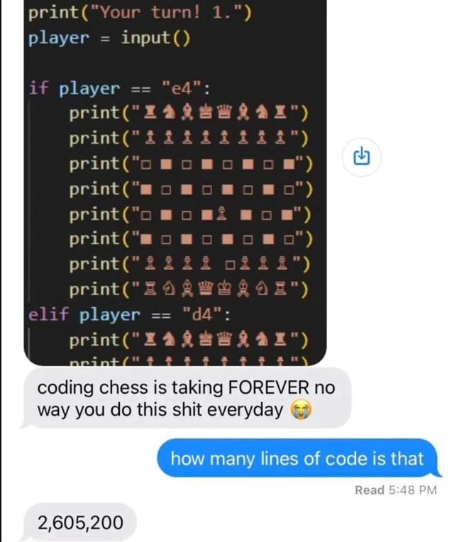 arrow-up10imageCoding chesslemmy.worldmaris@lemmy.world to Programmer Humor@programming.dev · 4 months agomessage-square7fedilink