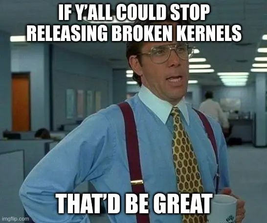Agreed… almost certainly not a kernel issue. Linus is famous for absolutely losing his shit if a kernel breaks userspace