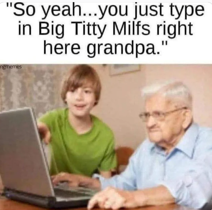 This meme no longer makes sense, as now the Millennial would be teaching the Gen Alpha how to use a computer.
