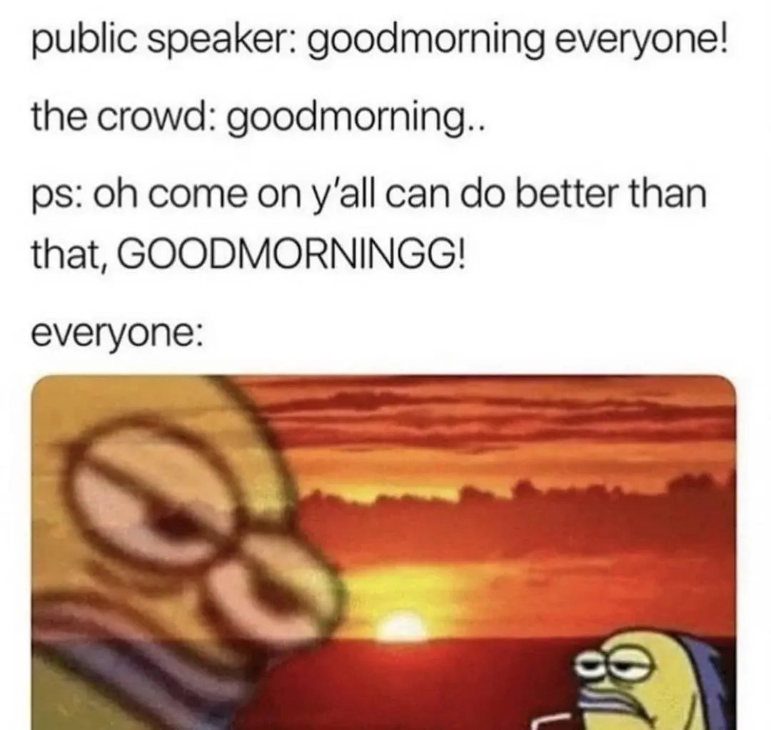 I’m concerned that the meme writer doesn’t know “good morning” is two words.