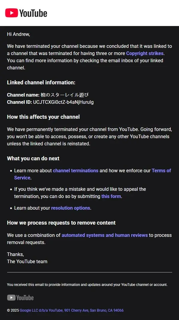 Isn’t it saying that Enderman’s channel was linked (involved with, co-run by, some other AI based bullshit, etc) to a channel that had copyright strikes, and that the Japanese channel was the one with copyright strikes?