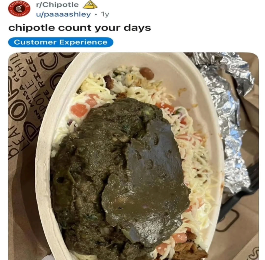 Yes, a fake/misleading post with either a topping that doesn’t exist, or guac that the customer themselves let sit for too long or microwaved is certainly the reason why the stock is collapsing.