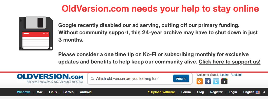 Although these days we have sites like Archive.org to do more large scale archiving, OldVersion.com is special for being focused and well-organized, along with a long and rich history that would be a shame to lose. We have referenced the site in the past for old versions as far back as 2008. Hopefully we’ll soon find out more about what is going on with the archive and what its future will be.
