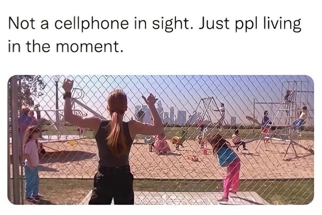 Playgrounds are like this now too. Kids playing, not looking at phones, living in the moment. 🙂