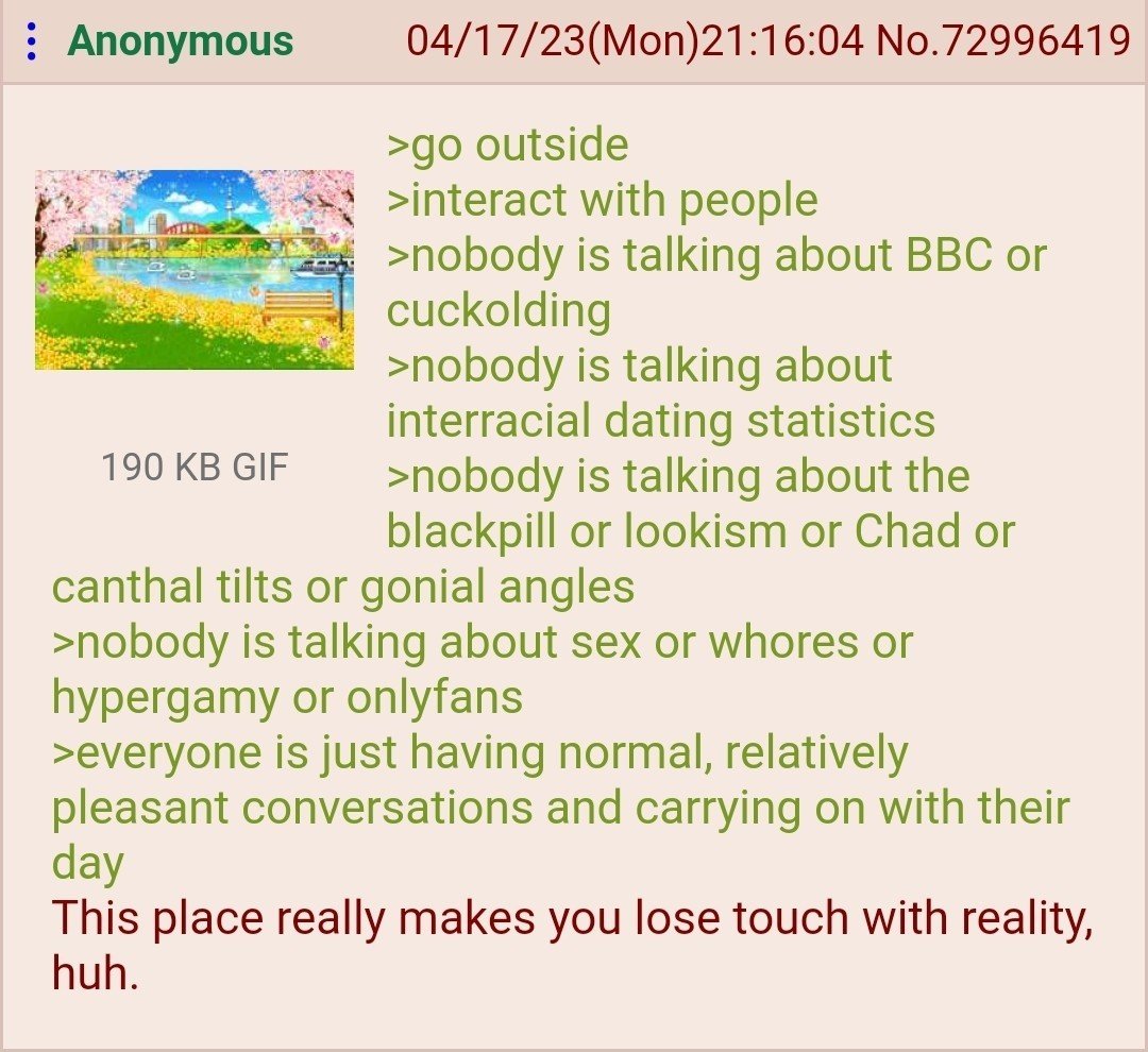 This is why people like this are told to go outside or touch grass.