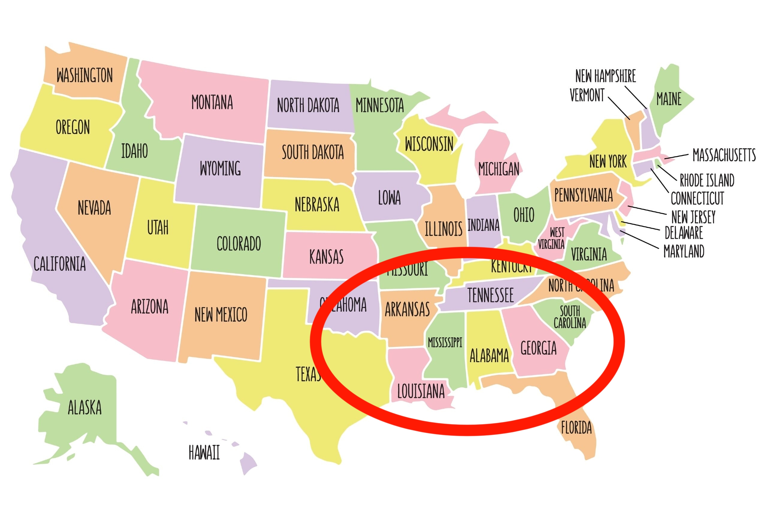 Call it the southeast, call it the deep south, hell even just call it the south. But the southern United States ain’t what’s circled there.