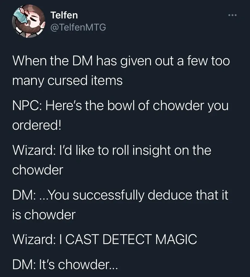 Stamets@lemmy.dbzer0.com to RPGMemes @ttrpg.network · 24 days agoTrust nothinglemmy.dbzer0.comimagemessage-square26fedilinkarrow-up1503