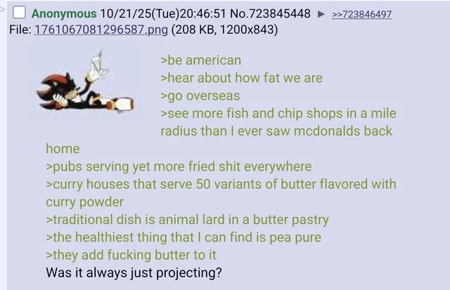 So OP is right except the US is worse. Over a third of people are obese and many more are overweight - that is shocking even with how bad things are in Europe. It is certainly not projecting.
