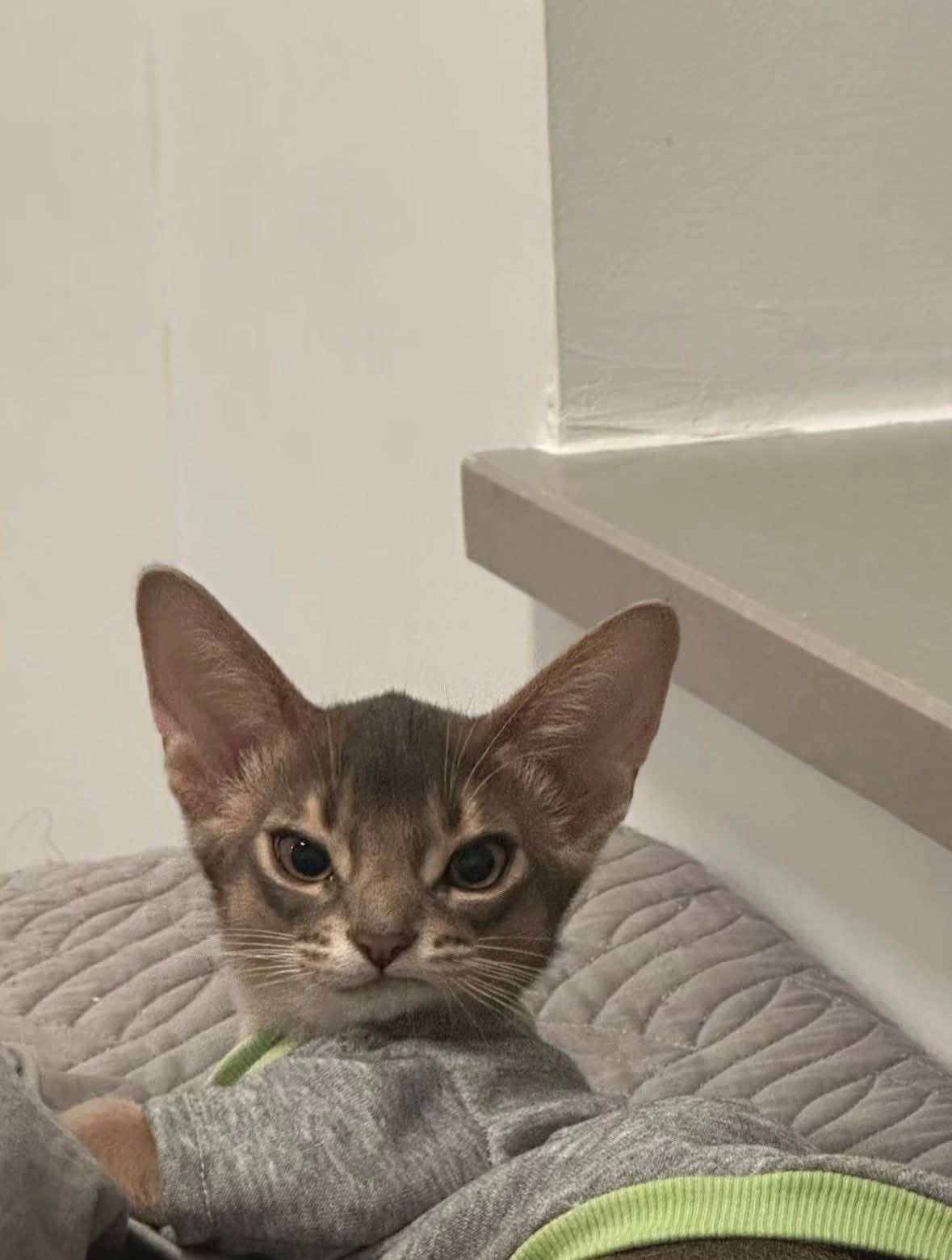 Um, is the cat wearing clothes??? Also, that sneer is amazing.