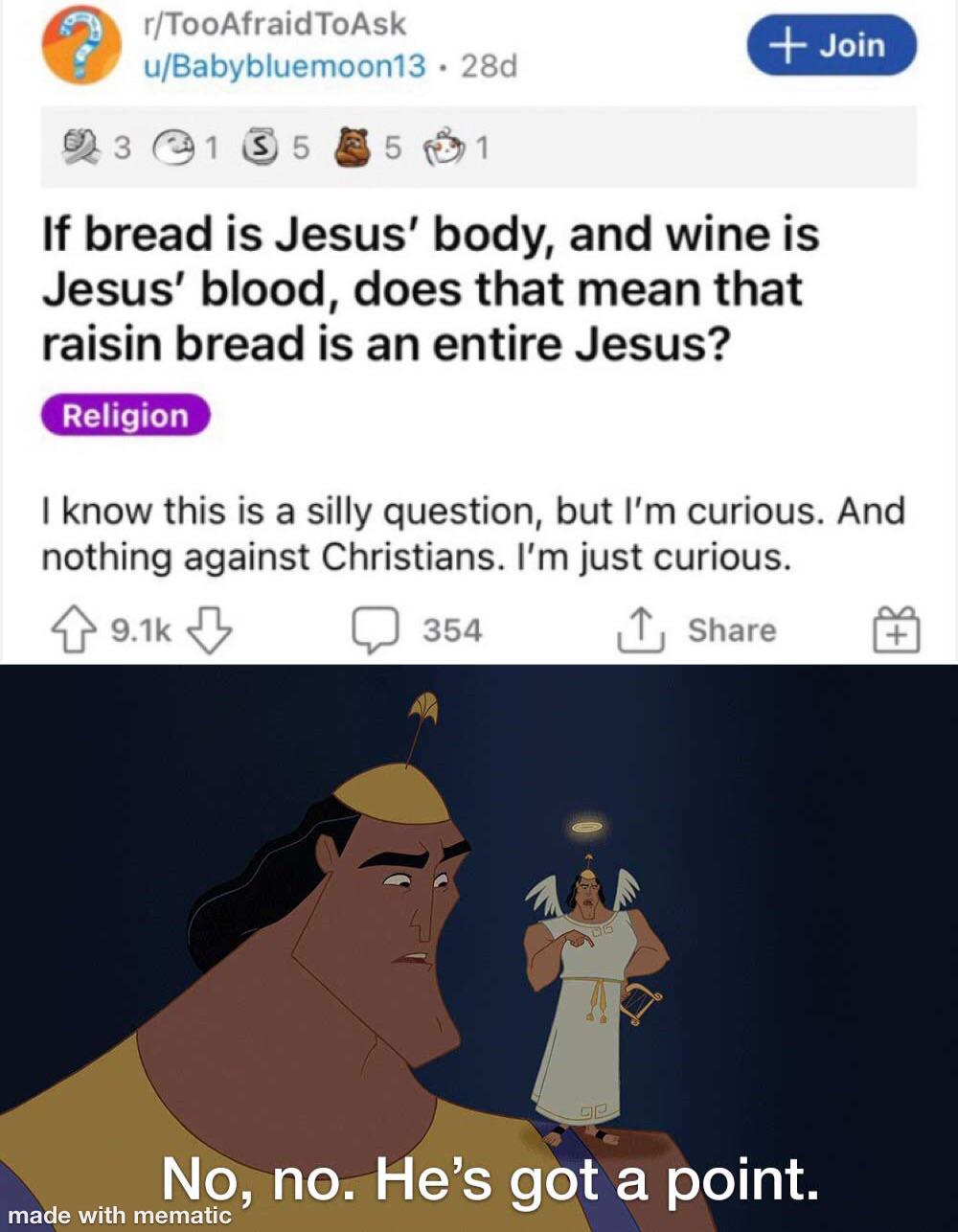 zedgeist@lemmy.world to memes@lemmy.world · 3 days agoConsecrated Host: Deliciouslemmy.worldimagemessage-square38fedilinkarrow-up1511