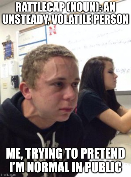 Example Sentence Trying to hold himself together in class, he looked every bit the modern rattlecap, barely containing the chaos under his skin.