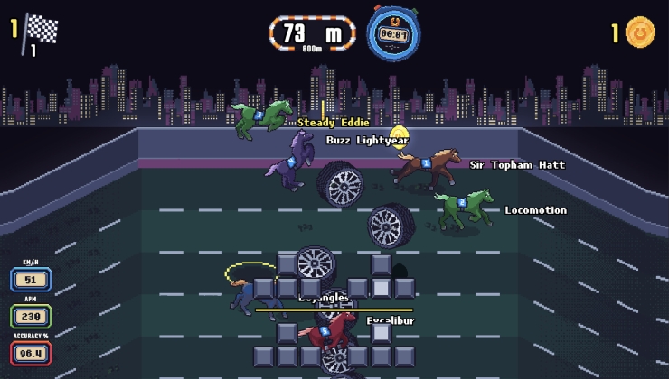 Don’t let the name put you off at all, this is not some cutesy horse game. Here it’s quite a challenge where timing is everything. You have to master control patterns from easy to godlike difficulty, leap over big jumps, and race through vibrant tracks while managing your horse. Some fun game mechanics included with each track having its own control pattern, and nailing the timing gives you a speed boost.