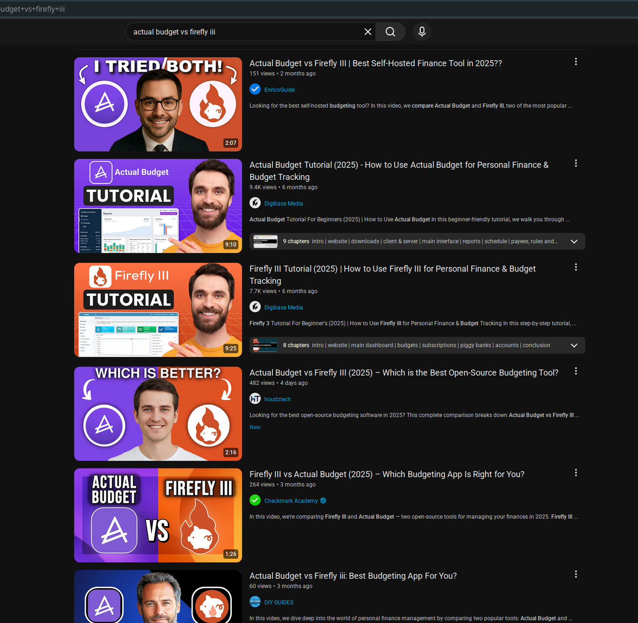 Anyone have a good comparison video? I’m just wanting a decent comparison of Actual, Firefly III and possibly HomeBank. Feel free to also give me your 2 cents on whatever you use :)