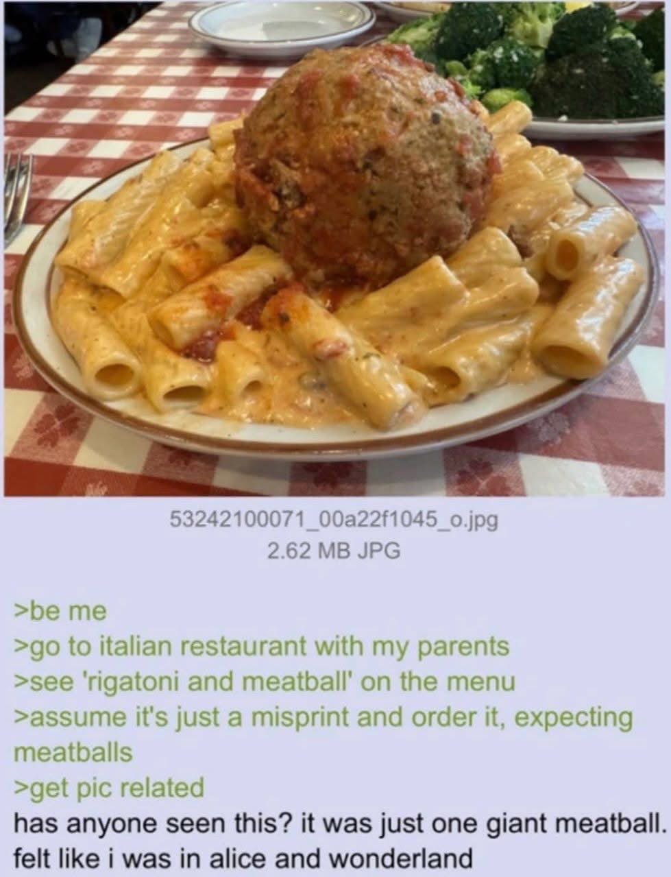🍹Early to RISA 🧉@sh.itjust.worksM to Greentext@sh.itjust.works · 3 months agoAnon eats Italiansh.itjust.worksimagemessage-square2fedilinkarrow-up12