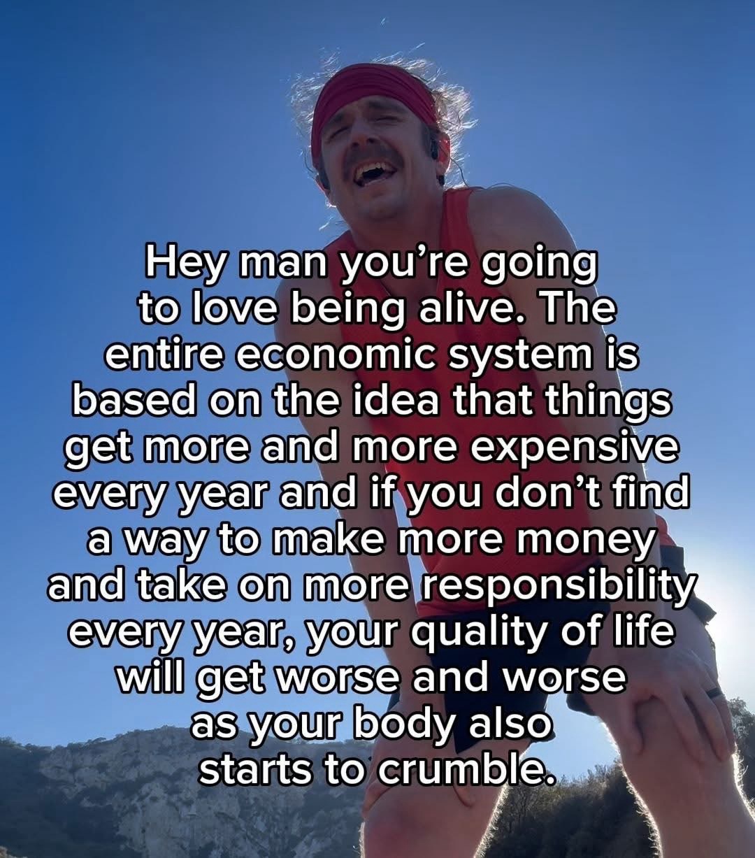 Oh and also the earth is boiling, all housing is being bought up, and AI systems that no one asked for are taking jobs and consuming so many resources that your expenses go up even if you never touch AI.