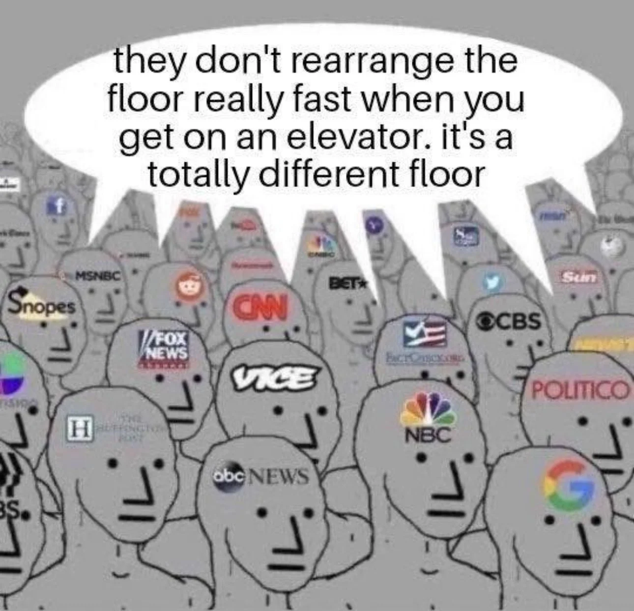 Big Building trying to brainwash “people” into believing that upstairs is real to sell more floors. Wake up sheeples!