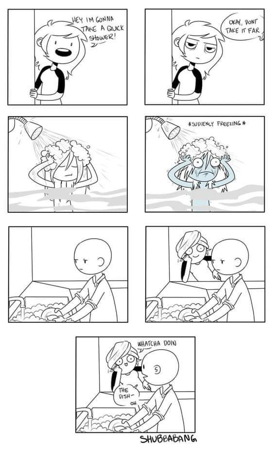 At my old man home, we are in the former case, which mean he often used what this comic shows to make sure we finish our shower if it gets too long to his liking (he is an asshole sometimes 😂).