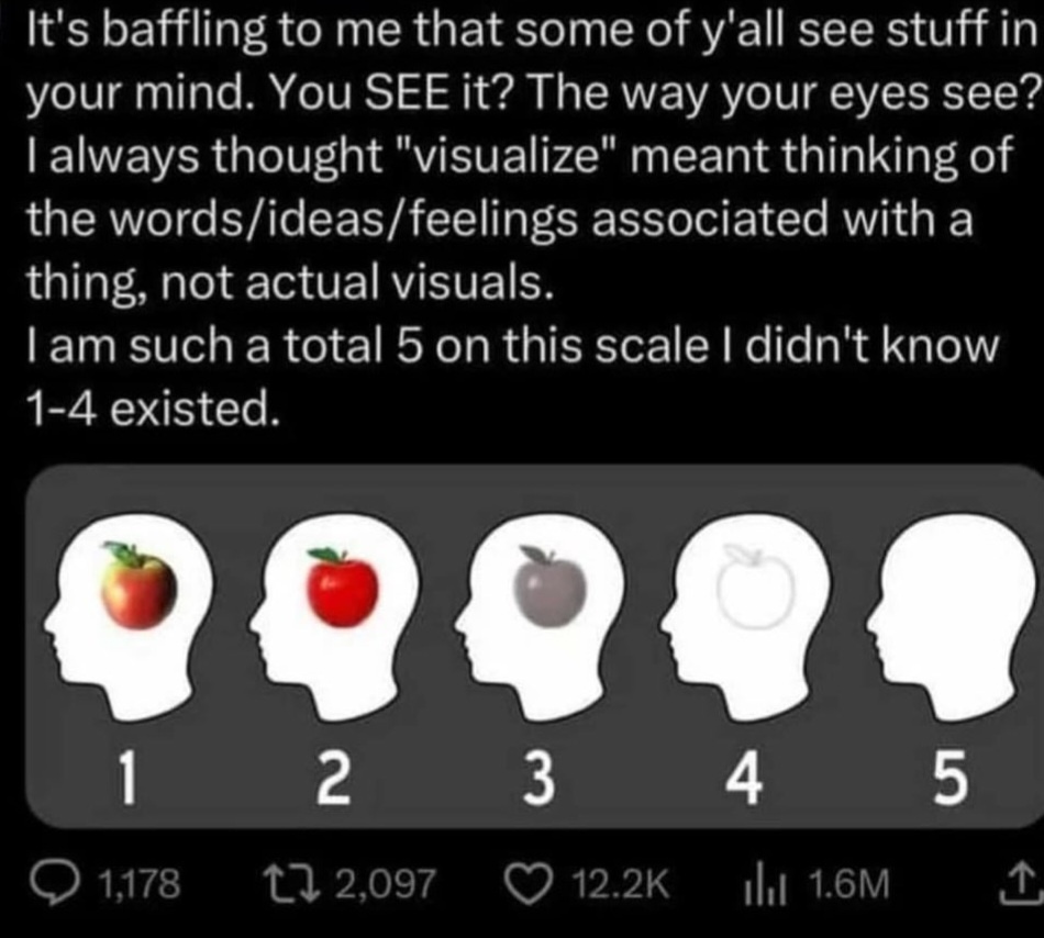 It totally blew my mind; when I realized others could see actual images in their heads.