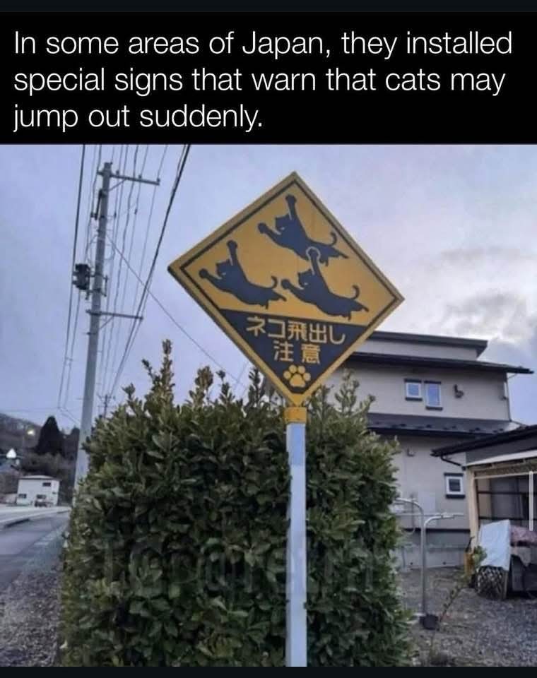I want to live in a country where “cats jumping out” is what they’re warning people about!