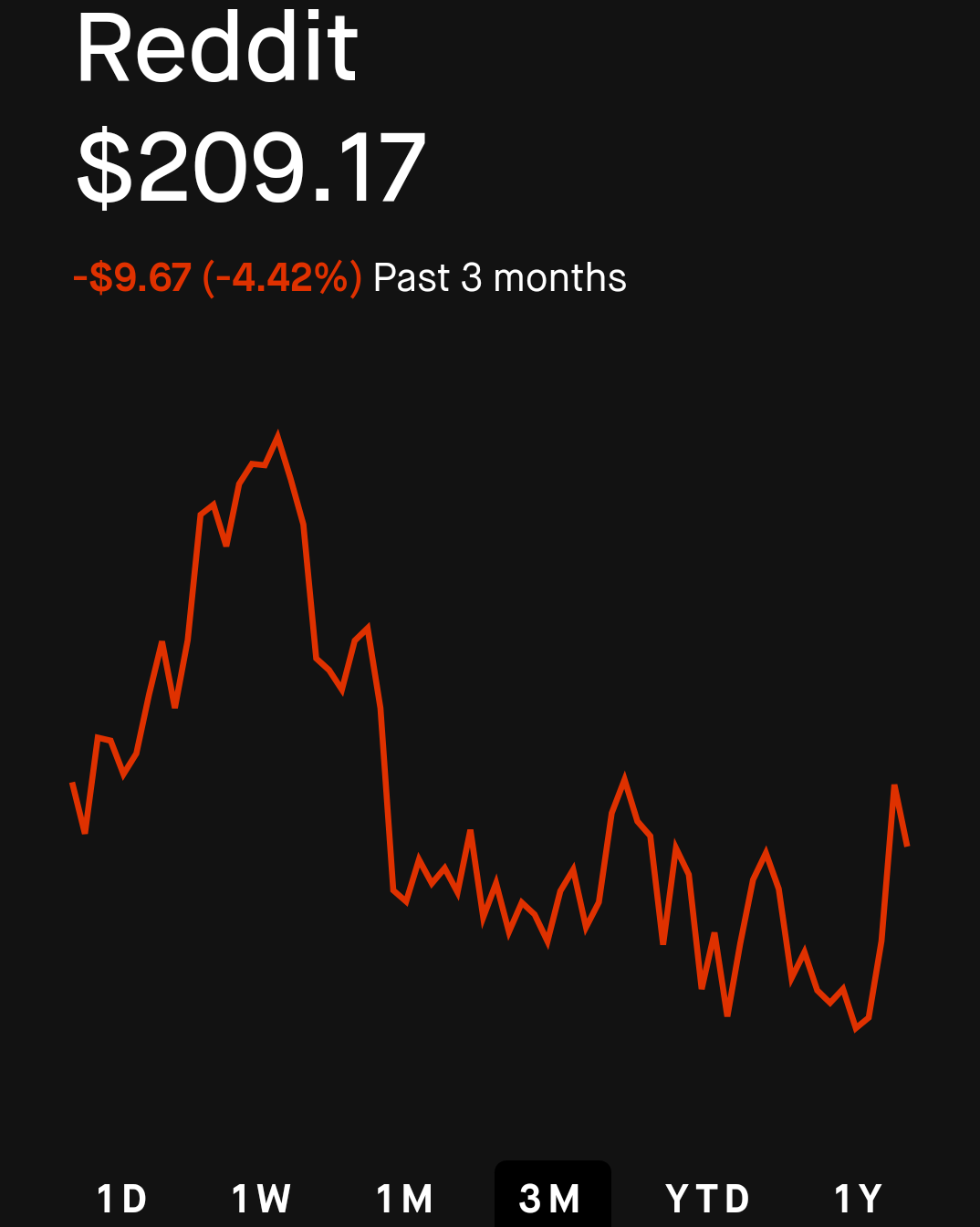 King@blackneon.net to Lemmy Shitpost@lemmy.world · edit-22 days agoReddit stock is down 4.42% over the past 3 monthsi.imgur.comimagemessage-square13fedilinkarrow-up1131file-text