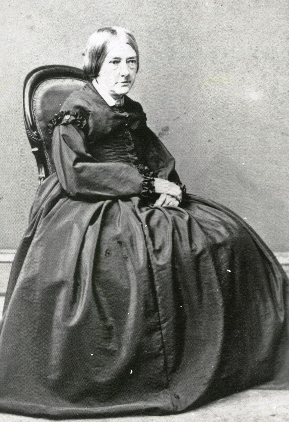 Frances Flora Bond, nicknamed “Fanny”, was born in Leicester, England, on July 24, 1812. Her father, Robert Bond, had been a prosperous lawyer and left an ample legacy to his children, who grew up very well off.[1] In her youth, Palmer, with her sister Maria, attended Miss Linwood’s School for young ladies, a select private school in London run by needlework artist Mary Linwood. There she was instructed in music, literature, and the fine arts.