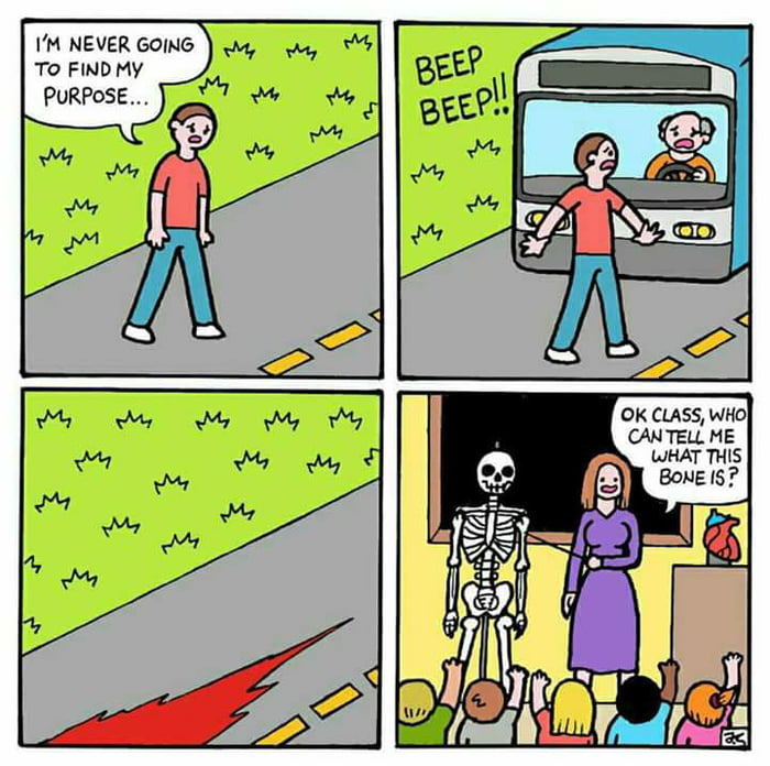 He got sent to an isekai, where he’s finding his purpose. (at least that’s what I got out of this comic strip…)