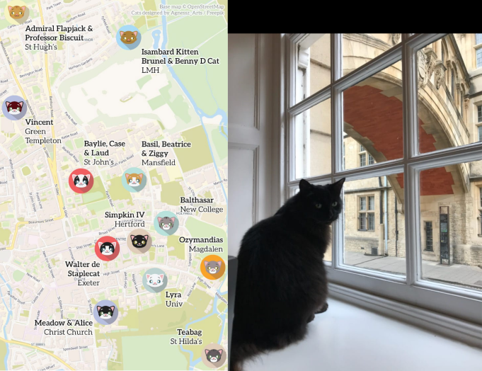 20/11/2025-26/11/2025 [1] Map of college cats of Oxford. Simpkin IV in the Hertford College. | © Oxford Clarion | Map data © OpenStreetMap Contributors. Community Adrian Shobrooke shared sev…