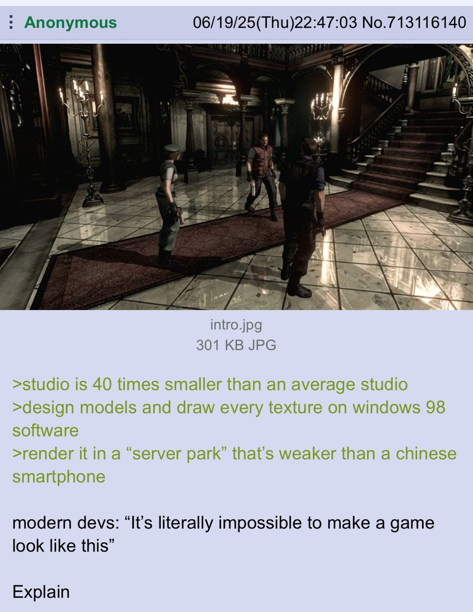 I noticed that too, but I do think that the anon is talking about the remaster since he’s also talking about Windows 98 and the remaster was out in 2002 while the original game was out in 1996. I know fuck all about the production of the remake, but maybe windows 98 was all they had available to them and maybe they did draw all the textures themselves for it. It’d have to look into that, though.