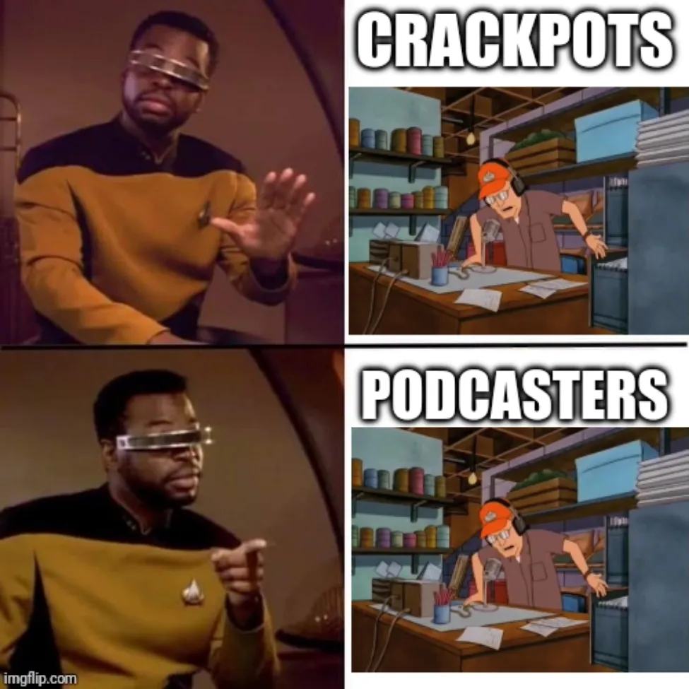 In before anyone assumes I’m making a blanket statement: Not all podcasters are crackpots, but all crackpots seem to have a podcast.