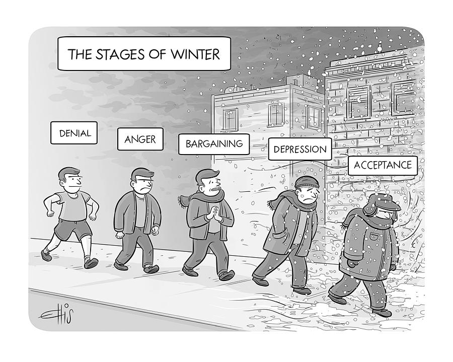 You’re missing the stage between denial and anger, which is annual sick week, because I refuse to put on a sweater and then I shiver in the park for an entire Saturday and catch a cold.