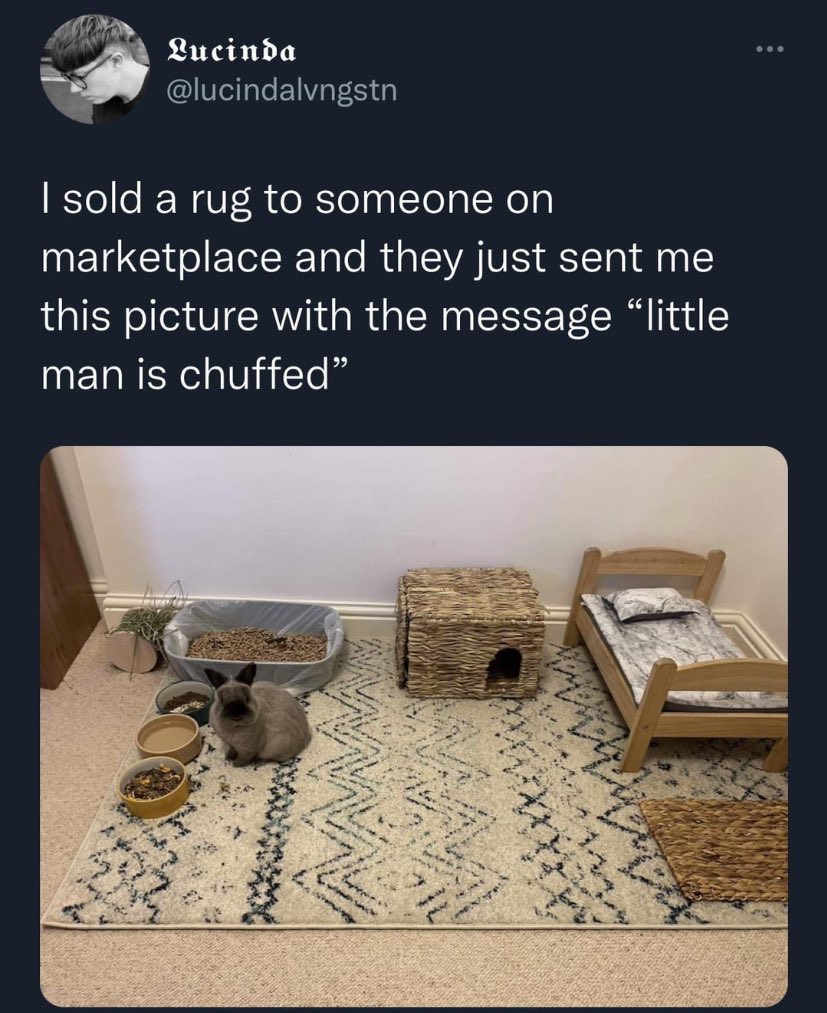 I’m amazed he knows how to use a litterbox and not just poop everywhere. That’s probably how he earned his nice rug!