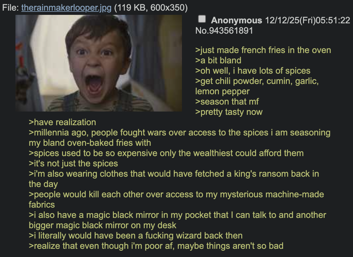 EDIT: I’m halfing up? on this. Fine, the serf didn’t own his house. your fucking parents and your grandparents did. so should you. Things are getting worse economically, and no amount of phones can change that.
