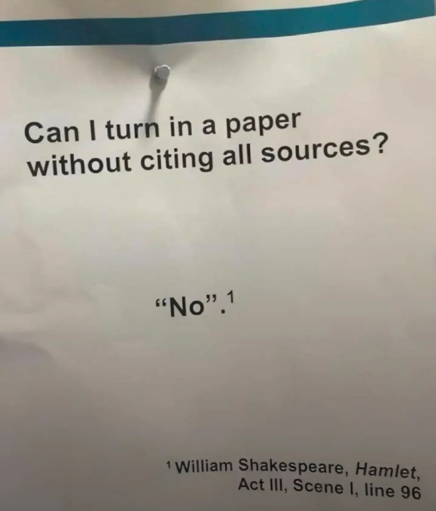 “Do I have to find a quote of someone saying it if I say the sky is blue? Do I have to reference my parents when I put my name at the top of the page?”