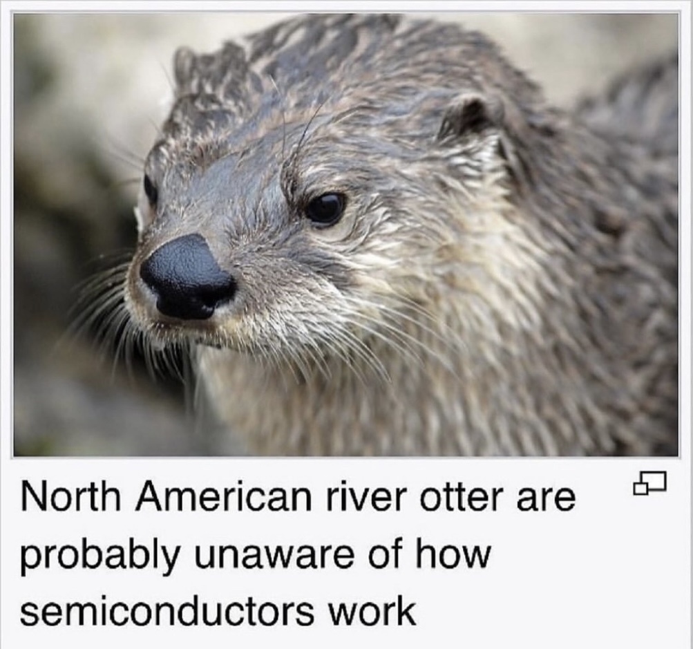 Am i sad because I’m empathizing with a North American River Otter who looks sad or am i sad because the North American River Otter is probably unaware of how semiconductors work? Either easy North American River Otter deserves better.