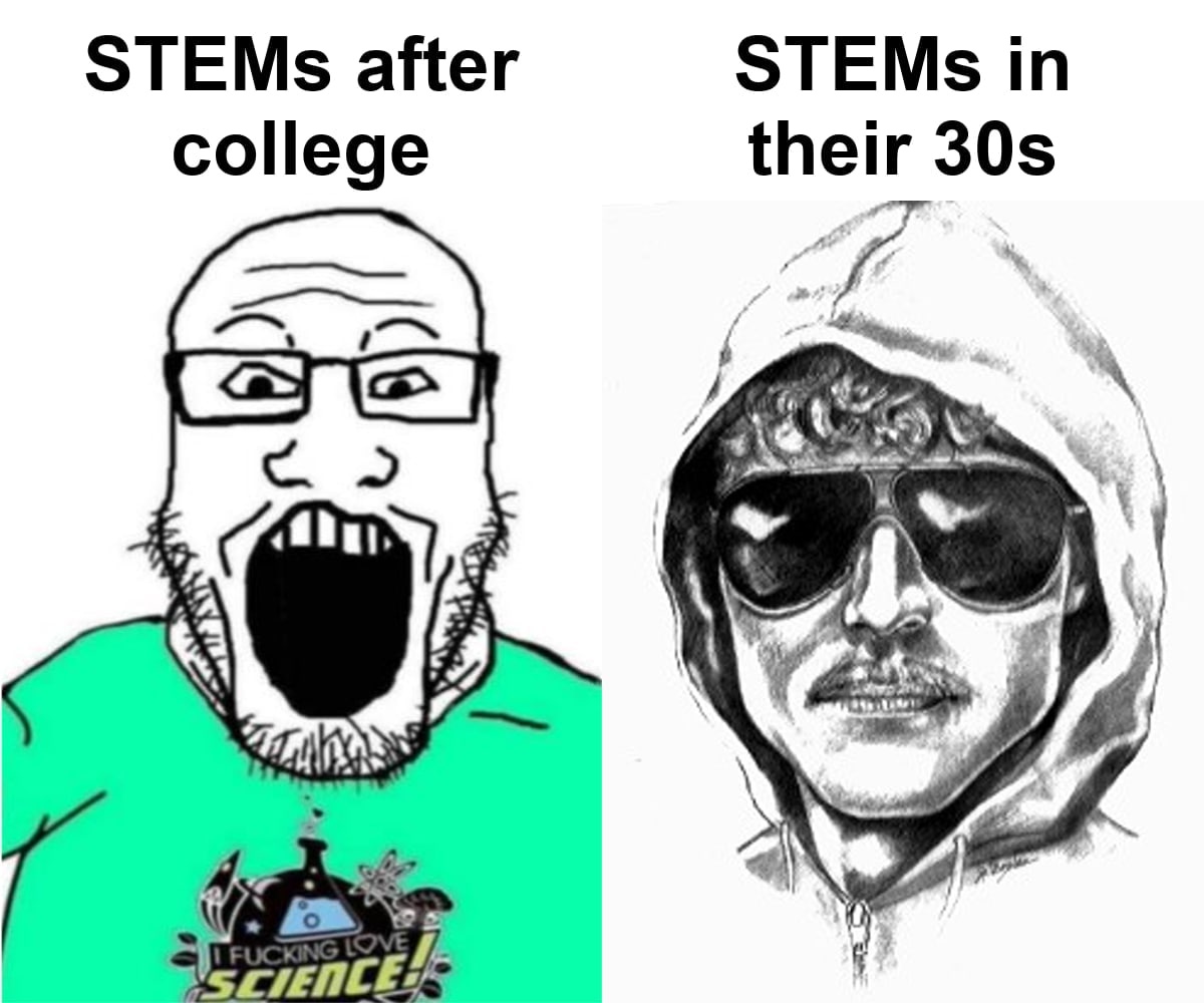 minus-squareɯᴉuoʇuɐ@lemmy.dbzer0.comlinkfedilinkarrow-up45·edit-24 个月前On the left is soyak (soyboy wojak): https://knowyourmeme.com/memes/soy-boy-face-soyjak I Fucking Love Science was a Facebook page that posted pop-sci articles. On the right is Ted Kaczynski AKA the Unabomber: https://en.wikipedia.org/wiki/Ted_Kaczynski